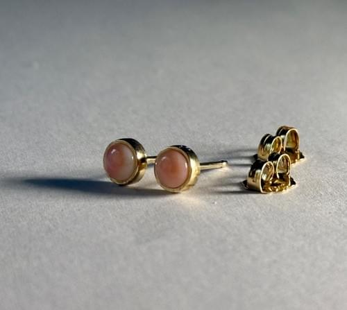 Bahamian Conch Shell & 14kt Gold Stud Cabochon Earrings
